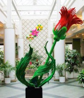 It is my intention to create art that brings an element of natural beauty to the environment. The flower sculptures and dioramas that I make are monumental in scale and elicit a sense of child-like wonder in the viewer. This suspension of the familiar is beneficial in that it allows one to be transported to another reality - much like a feeling of Alice In Wonderland.